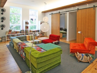 Es kommt oft vor, dass im Haus nicht genug Platz ist, um wichtige Zonen in zwei separate Räume zu unterteilen. Das Wohnzimmer ist mit dem Schlafzimmer, dem Schlafzimmer - mit einem Arbeits- oder Elternzimmer - kombiniert.