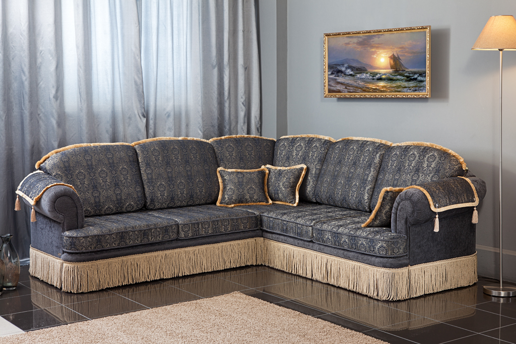 - Tapisserie. Weiche farbige Schicht der natürlichen Baumwolle, die den Möbeln der kürzesten Form ein luxuriöses Aussehen geben kann. Tapestry ist nicht kapriziös beim Putzen, verbläßt nicht, verursacht keine Allergien.Sein natürlicher Ursprung ist jedoch zugleich eine Würde und ein Nachteil, da ein Material ohne den Zusatz synthetischer Komponenten schneller abradiert und sein Aussehen verliert.