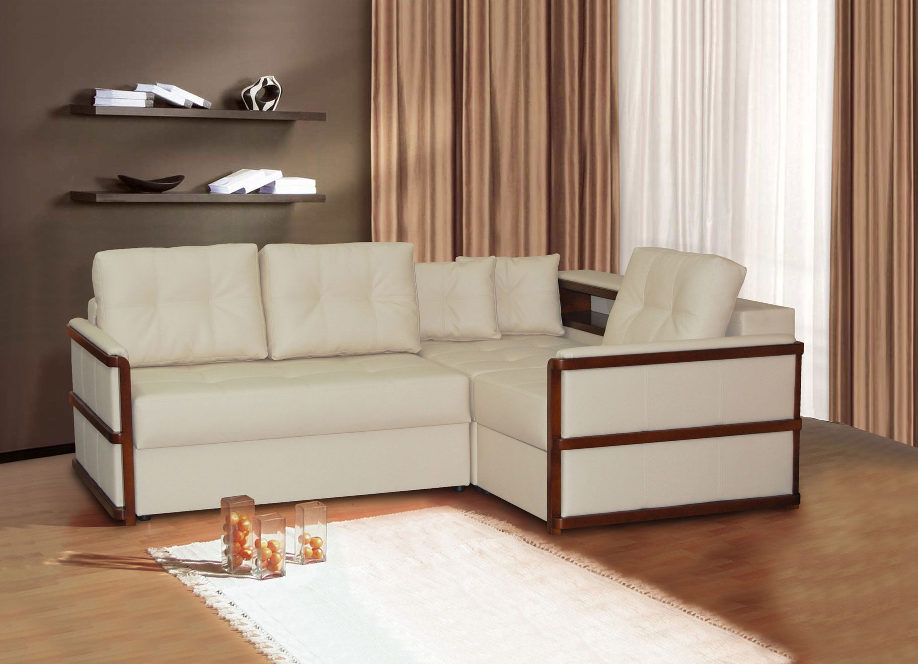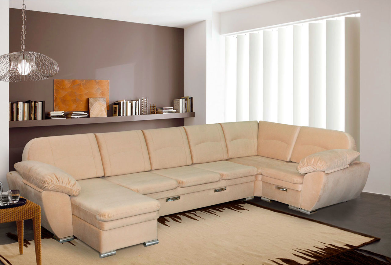 Das Ecksofa "Senator" mit abnehmbaren Armlehnen hat nicht nur einen soliden Namen, sondern sieht auch gut aus. Für alle Eigenschaften bezieht es sich auf die Luxusmodelle: