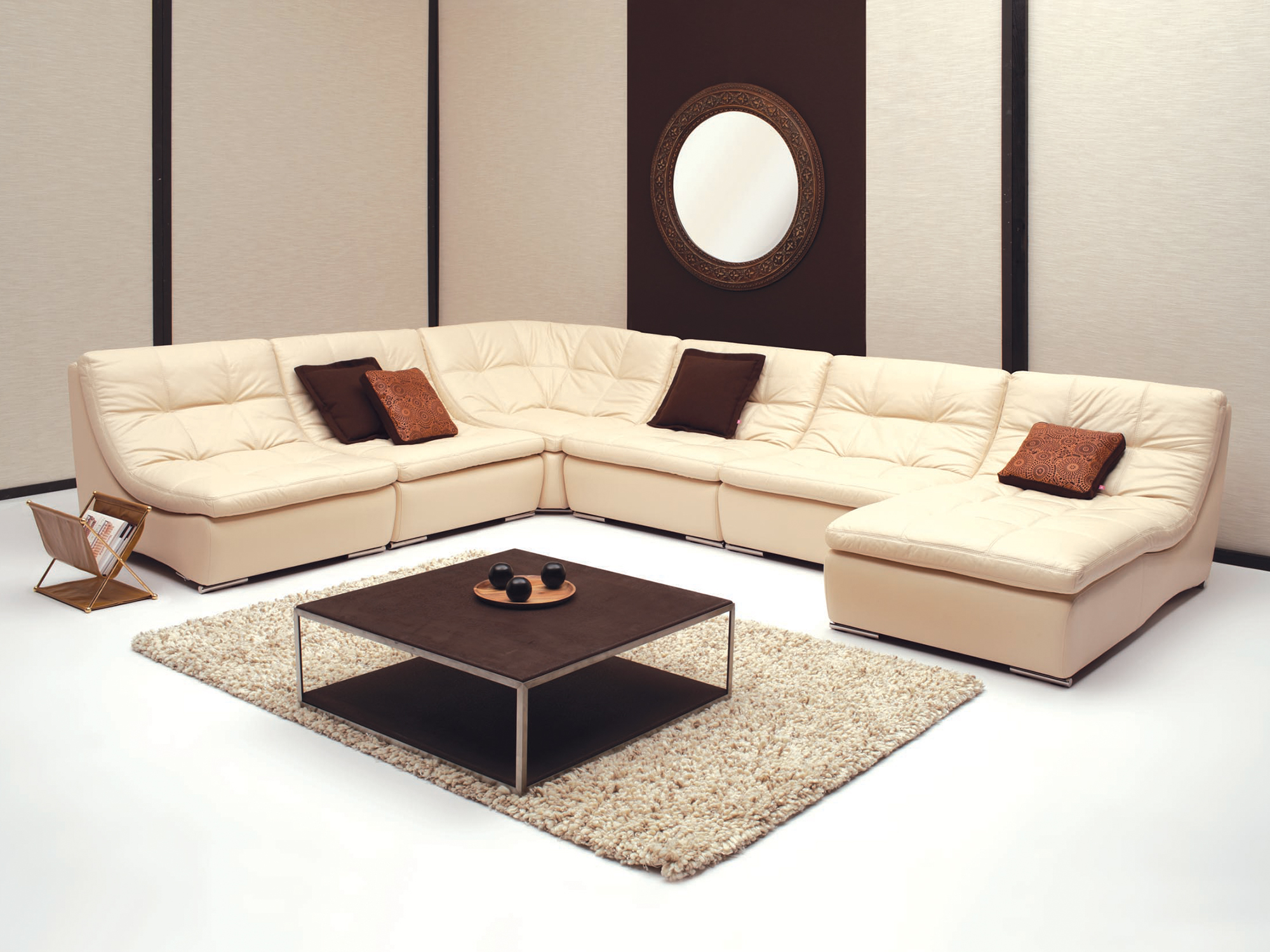Module sind Bestandteile von Möbeln, deren Kombination es ermöglicht, Polstermöbel auf jede bequeme Weise zu modifizieren. Ecksofa mit einer Drehung nach links und mit einer Drehung nach rechts, U-förmigen Sofa, Zick-Zack, Halbkreis - nur einige der möglichen Optionen. In diesem Fall können die Module als unabhängige Elemente funktionieren.