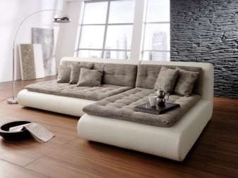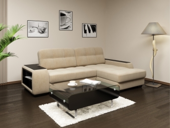 Das L-förmige Modell zeichnet sich durch eine große Anzahl von Sitzen aus, Menschen, die auf einem solchen Produkt sitzen, können frei miteinander kommunizieren und den Gesprächspartner in das Auge schauen. Eckmodelle ermöglichen es Ihnen, kein Geld für den Kauf von Stühlen auszugeben - ihre Rolle wird an der Seite des Sofas gespielt.