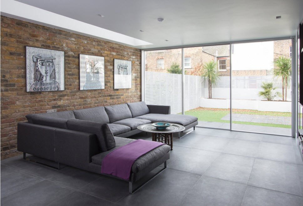L-förmiges Modell des Sofas ist universell. Es ist nicht nur für die Installation in der Ecke gedacht, an die viele gewöhnt sind. Solche Möbel können gut in der Mitte des Raumes sein.
