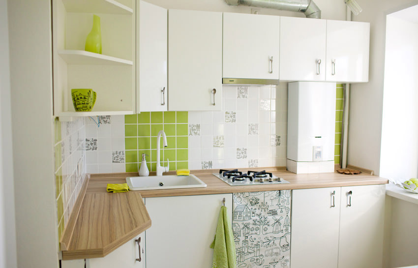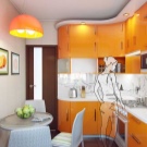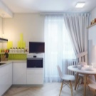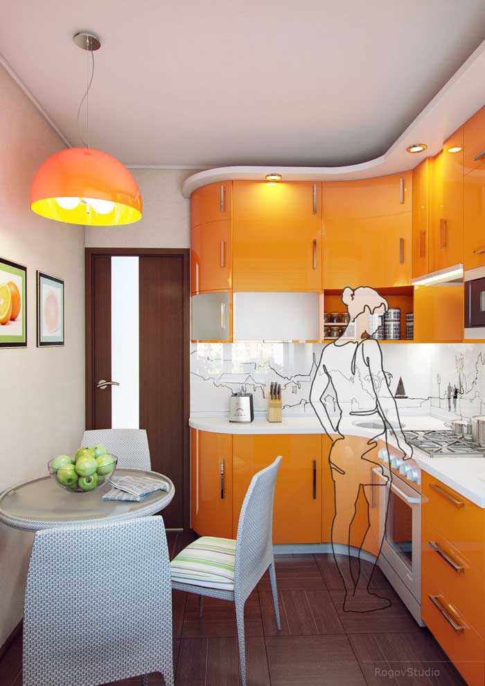 In einer modernen 1-Zimmer-Wohnung von 30 Quadratmetern. M ungefähr 6 Quadratmeter. m fällt auf die Küche, aber selbst mit so kleinen Dimensionen kann die Küche gemütlich gemacht werden. Die Möbel sollten hier mit Einbaugeräten ausgestattet sein. So können Sie den Platz in der Küche so effizient wie möglich nutzen. In solchen Fällen greift man sogar auf die Erweiterung der Fensterbank zurück. Dort können Sie eine Arbeitshostess organisieren oder Küchenutensilien, Geschirr, kleine Haushaltsgeräte und andere Dinge platzieren. Unter der Fensterbank können Sie Regale und Schubladen machen. Sie lagern Besteck, Töpfe und sogar einige Produkte wie Getreide.
