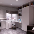 Unter der verlängerten Fensterbank organisieren wir das Aufbewahrungssystem der Kleidung und statten eine Kommode aus. Es hat Schubladen für Wäsche und Kleidung. In der Küche dient die Fensterbank als Waschplatz, wodurch die Küche komfortabler und funktioneller wird.