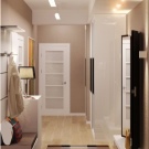 Möbel sind am besten zu kaufen, nicht zu groß, schmal und leicht. Glossy und Glasoberflächen - was Sie brauchen. Es ist wichtig, sehr helle und hochwertige Lichtquellen zu wählen, damit der Flur nicht zu klein aussieht.