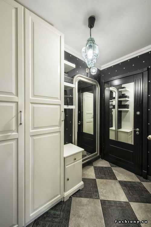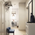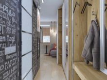 Jede Wohnung hat eine kleine Eingangshalle. Wenn die Wohnung 30 Quadratmeter ist. m - "Chruschtschow", dann hat es eine Speisekammer, die oft den Schrank für Kleidung ersetzt.In der Speisekammer können Sie komfortable Fachtüren installieren, die keinen Platz zum Öffnen benötigen. So wird der Raum einen eingebauten Kleiderschrank haben, der ein Minimum an Platz einnimmt. Darüber hinaus müssen Sie den Inhalt richtig planen: Regale, Kleiderbügel, Schubladen.