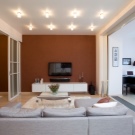 Beim Erstellen eines modischen Design-Studio-Apartment von 30 Quadratmetern. m Es sollte viel Aufmerksamkeit auf die Beleuchtung gelegt werden. Die zentrale Zone, die in der Regel das Wohnzimmer ist, muss so gut wie möglich beleuchtet werden, und die Schlaf- und Küchenbereiche - Quellen des diffusen Typs. Modisch sind auch Designideen für die Trennung von Zonen mit Hilfe von lichtdurchlässigen Screens, die einfach aussehen und gleichzeitig den Raum abgrenzen.