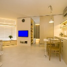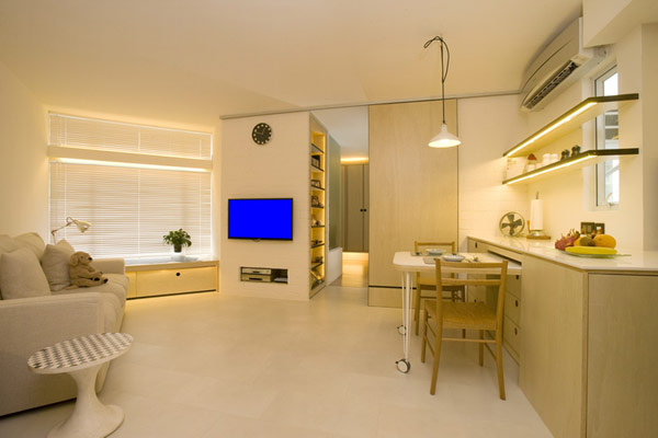 Dies ist der am besten geeignete Stil für eine Wohnung von nur 30 Quadratmetern. m) Das Design sollte einfach und funktional sein. Wandbeläge sollten einfach und dünn sein und Grundwandtöne werden für die Wanddekoration verwendet. Sie können ein paar Akzente mit Kaffee, braun oder glänzend schwarzen Oberflächen hinzufügen.