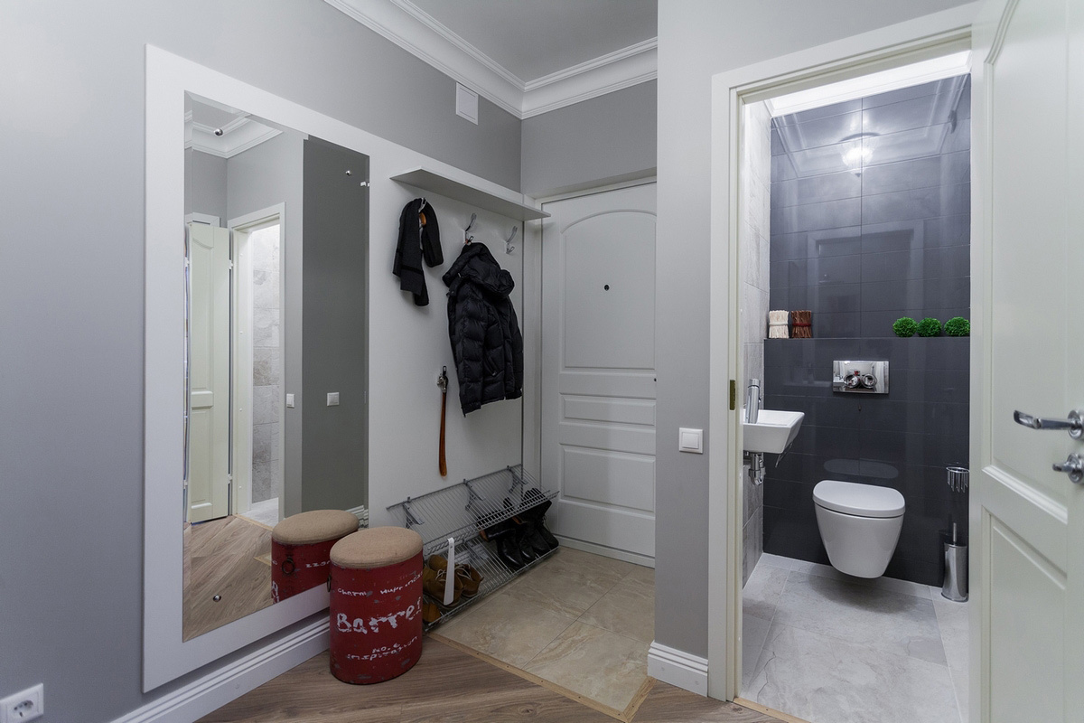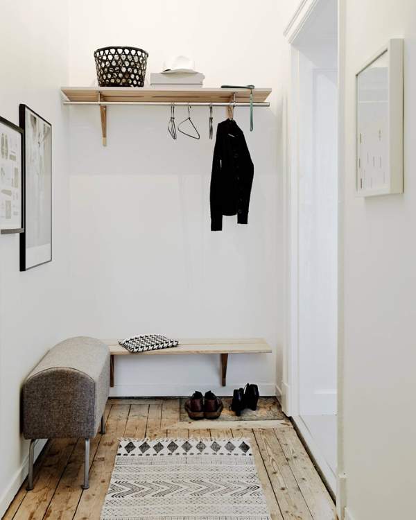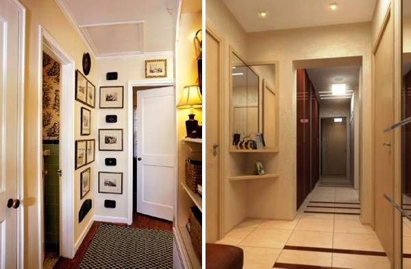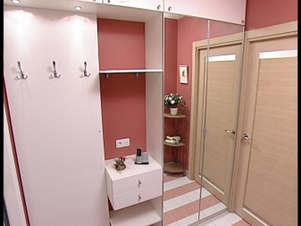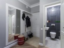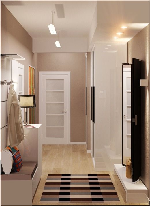 Im kleinen Flur können Sie auch Haken hängen und ein Gestell für Schuhe machen: hochwertig und dicht, wird es den Stuhl für pereobuvaniya ersetzen. In einem kleinen Flur Sie müssen einen großen Spiegel an der Wand platzieren, der den Raum optisch erweitert.