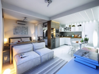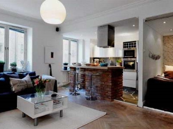 Derzeit sind Studio-Apartments sehr beliebt. Dies ist eine ausgezeichnete Lösung für junge Paare und für Junggesellen, aber oft muss die ganze Familie in Studios leben. Wenn das Apartment ursprünglich nicht als Studio konzipiert wurde, kann es für eine solche Art von Raum, die viele tun, früh umgestaltet werden. Das Beste von allem, wenn die Wohnung berechnet wird, um darin zusammen zu leben.