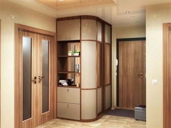 Wenn es in einer solchen Halle keinen Einbauschrank gibt, dann wäre die perfekte Lösung, einen Eckschrank zu installieren, aber er kann auch durch einen Schrank ersetzt werden.