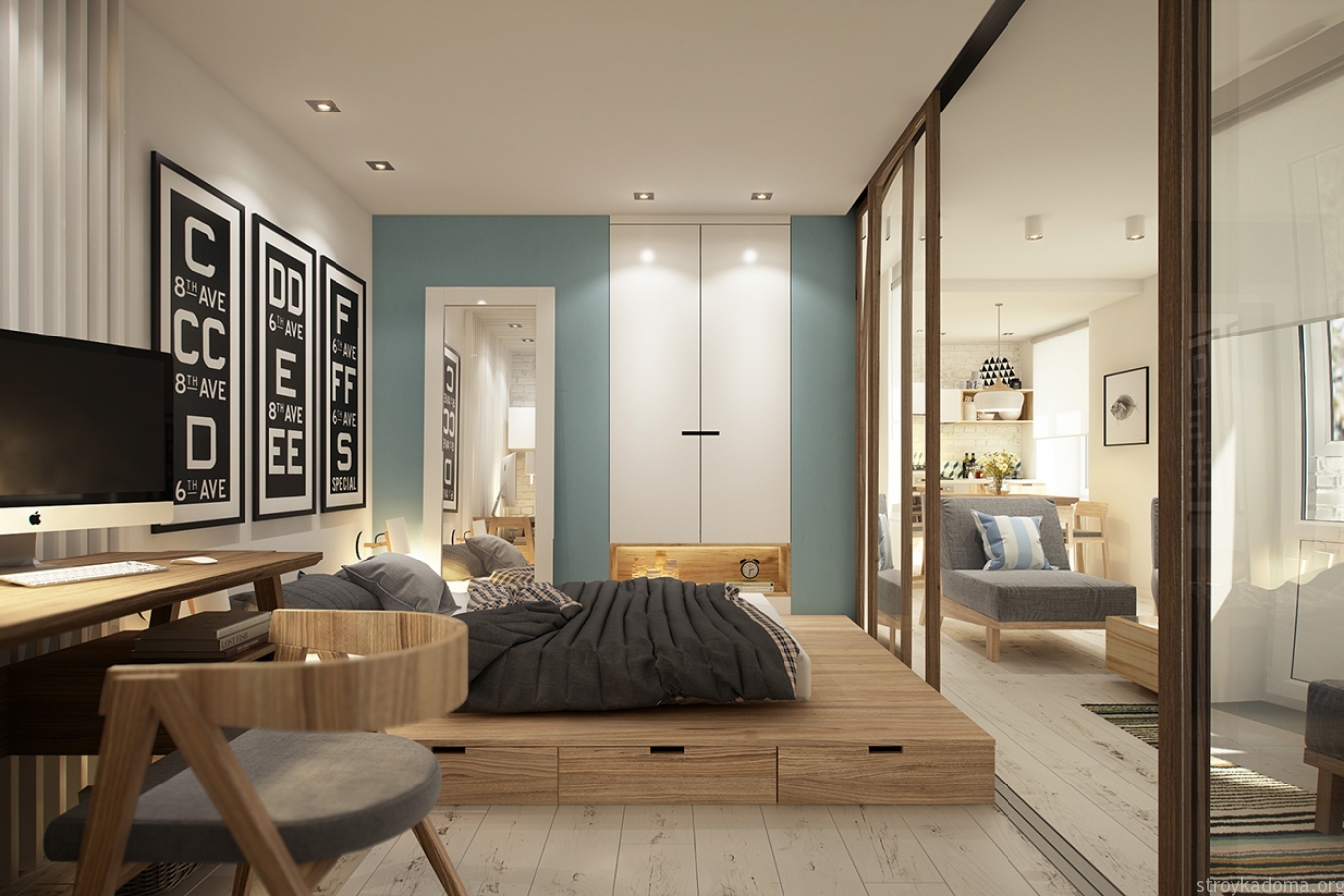 Design einer Einzimmerwohnung 30 qm: schöne Beispiele der Innenarchitektur