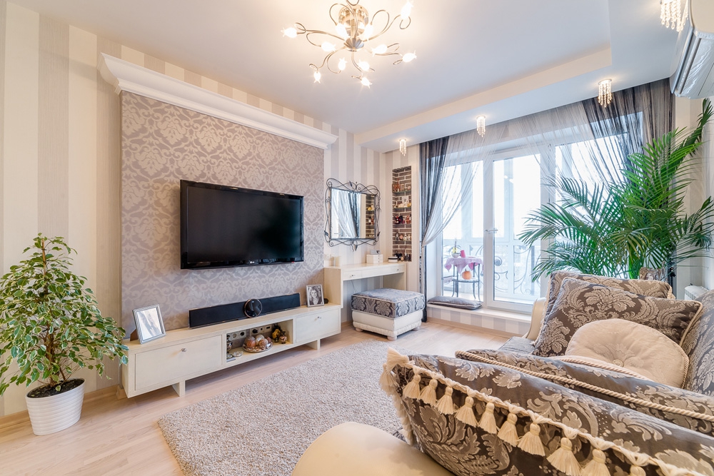 Partitionen werden in diesem Fall nicht empfohlenZoning kann auf andere Arten erfolgen. Der Raum gliedert sich in funktionale Bereiche mit Hilfe von Möbeln, Beleuchtung, verschiedenen Ebenen des Bodens, der Decke und anderen. Zuallererst müssen Sie sich bei der Entscheidung für die Inneneinrichtung einer solchen Wohnung entscheiden, welche Funktionsbereiche zugewiesen werden müssen.