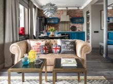 Wenn Sie eine Wohnung im Loftstil entwerfen, können Sie ungewöhnliche Designideen verwenden. Kleine hängenden Objekte an der Decke, darunter auch Metall, sorgen für die richtige Stimmung. Für die Einrichtung können Sie auch Banken mit Tasten in verschiedenen Farbtönen verwenden. Gläser mit Glasperlen, Perlen, Nüssen helfen, Akzente zu setzen. Gefäße für die Dekoration können mit den ungewöhnlichsten und uncharakteristischen Inhalten gefüllt werden.