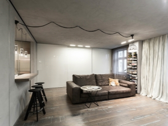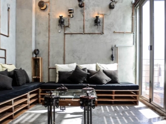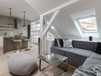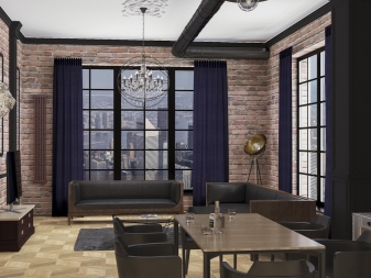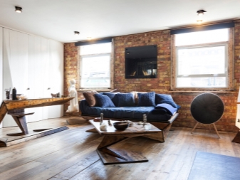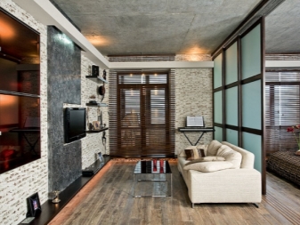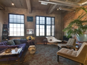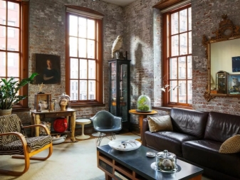 Gleiches gilt für die Fenster: Sie versuchen so viel wie möglich zu machen, damit mehr Licht in den Raum gelangt und es wird geräumig. In solchen Räumen versuchen sie, die Nachlässigkeit der Gestaltung der Wände zu betonen. Wenn der Raum auf den ersten Blick noch nicht mit Möbeln und anderen Einrichtungsgegenständen ausgestattet ist, kann es sogar so aussehen, als wäre die Reparatur nicht abgeschlossen. Das ist jedoch nicht wahr.