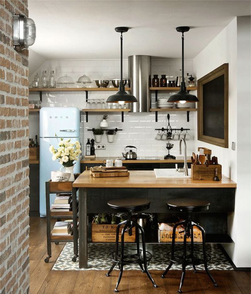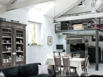 Zweistöckige große oder kleine Apartments können auch im Loftstil eingerichtet werden. Attic Wohnungen sind ideal für dieses Gebiet. Im zweiten Stock können Sie ein Zimmer ähnlich dem Dachboden, aber Wohnzwecke ausstatten. Die Leiter sollte klein sein, Metall. Die Grundfläche ist nicht die Hauptsache, das Wichtigste ist das Layout. Wenn es eine Möglichkeit gibt, dann ist es notwendig, unnötige Trennwände und Wände loszuwerden und den Raum geräumiger zu machen, die Grenzen beraubt.