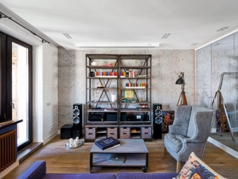 Innendekoration im Stil des Lofts von innen deutet darauf hin, dass der Besitzer einer Wohnung oder eines Hauses unnötige Trennwände, Einbauschränke und Schränke loswerden sollte. Mezzanines sind auch unpassend und überfluten den Raum.Wenn möglich, müssen Sie auch die Größe von Fenstern oder deren Anzahl erhöhen. Es ist besser, Regale des offenen Typs zu installieren, versuchen Sie, auf ihnen so wenig wie möglich von dekorativen Elementen und Zubehörteilen zu setzen, nur die notwendigen Dinge verlassend.