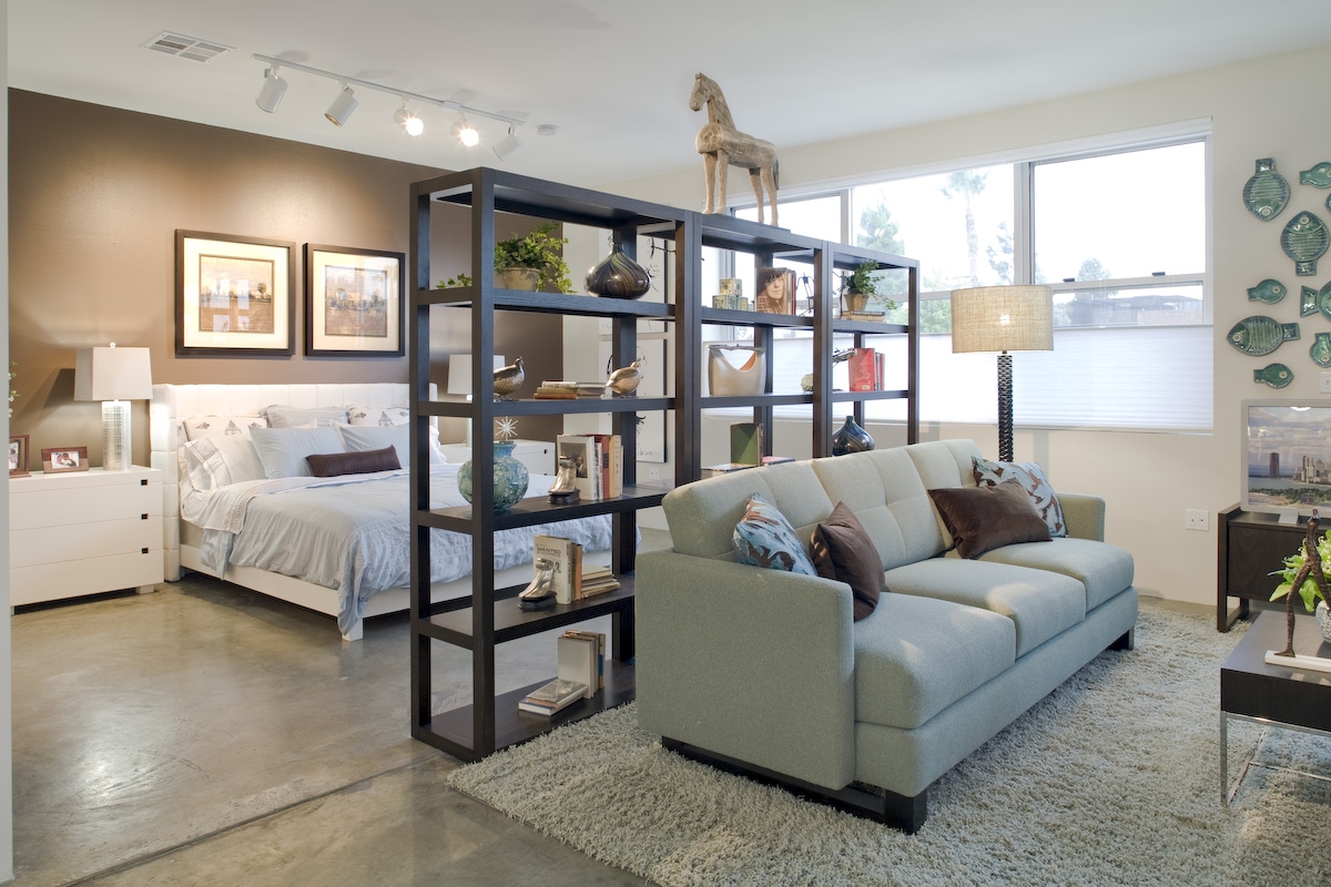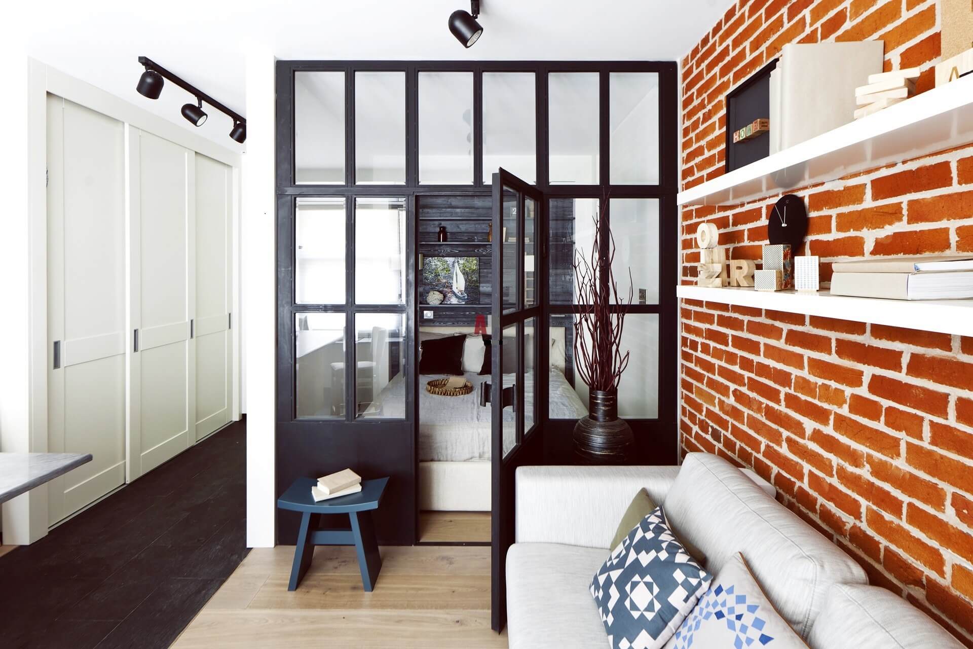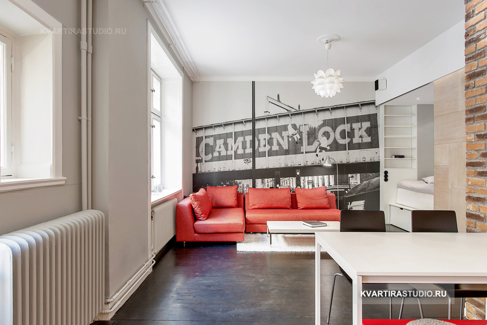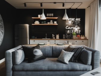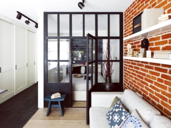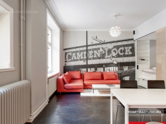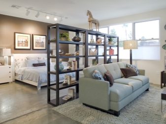 Vor allem ist es notwendig, sich für einen Schlafplatz zu entscheiden, besonders in einem Studio-Apartment. Für dieses perfekte klassische niedrige Bett, Couch oder kleines Sofa. Sofas und Sessel sind am besten, um Leder mit einer rauhen Textur zu kaufen. Auf dem Podium können Schlafmöbel aufgestellt werden, die oft zusätzliche Aufbewahrungsboxen ausstatten. Bei der Auswahl kleiner Möbelstücke Es ist besser, Transformatoren den Vorzug zu geben.