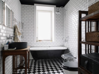 Für die Lagerung können Sie und kleine Nachttische und Kommoden verwenden. Es ist besser, Metall- und Glaselemente von Möbeln in das Badezimmer zu stellen.Also, für ein Waschbecken oder Bad ist perfektes Material wie Edelstahl. Klempner sollten sein so einfach wie möglich und nicht sehr modern. Das Küchenset kann komplett aus Holz sein oder Metalloberflächen haben.