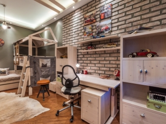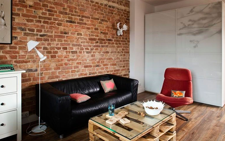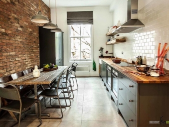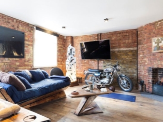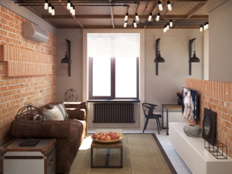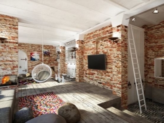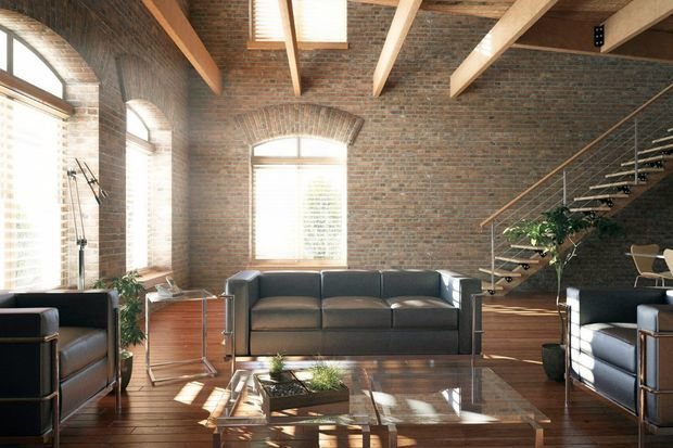 Wenn das Haus Ziegel ist, dann ist es besser, grobe Ziegelwände für die Dekoration zu verwenden. Wenn das nicht möglich ist, können Sie zusätzlich ein Mauerwerk an einer Wand machen. Zusätzlich ist es besser, die Nähte zwischen den Ziegeln aufzuhellen, um jedes Strukturelement zu erhellen. Sie können Putz verwenden, um die Wände zu beenden. Der Loft-Stil erlaubt kein Finishing.