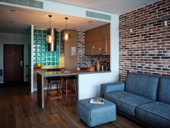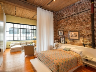 Wenn Sie ein Studio-Apartment haben, dann ist dies das Merkmal des Interieurs im Loft-Stil alles ist offen, nur der Schlafbereich kann vor neugierigen Blicken verborgen werden. Es gibt keine abrupten Übergänge und Hindernisse in diesem Stil. Große Einrichtungsgegenstände sind hier nicht besonders.