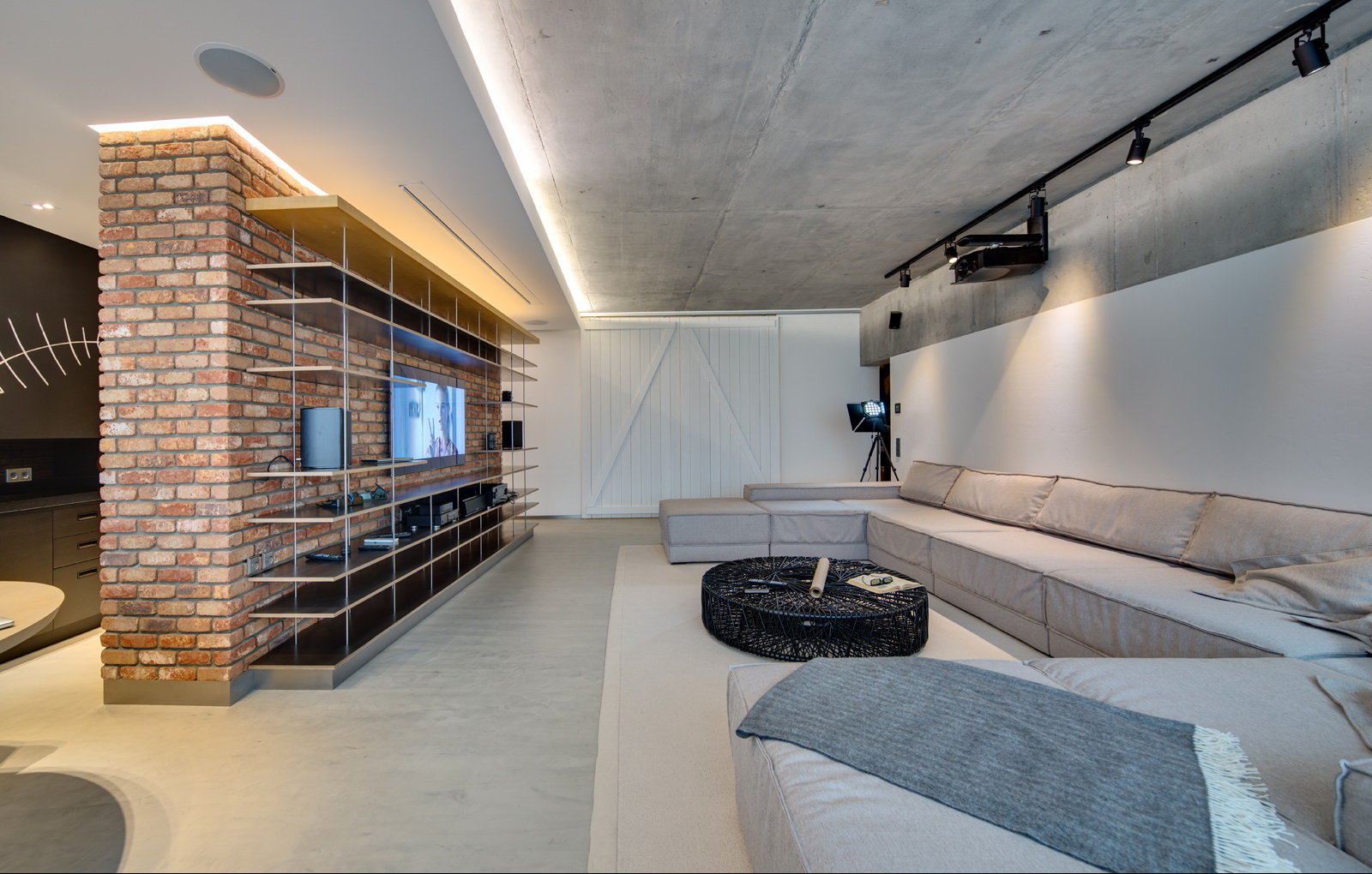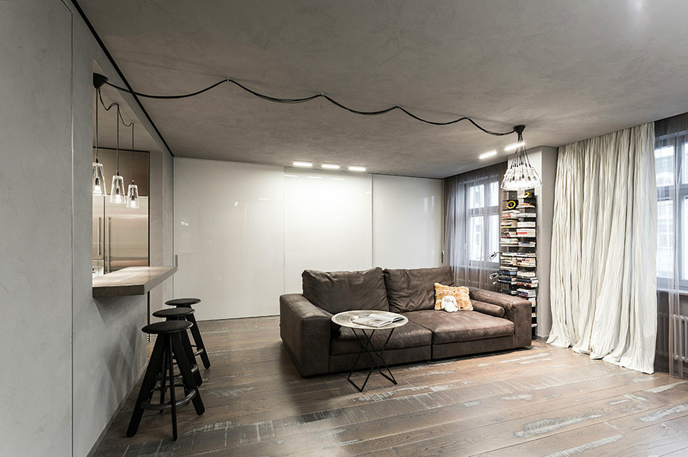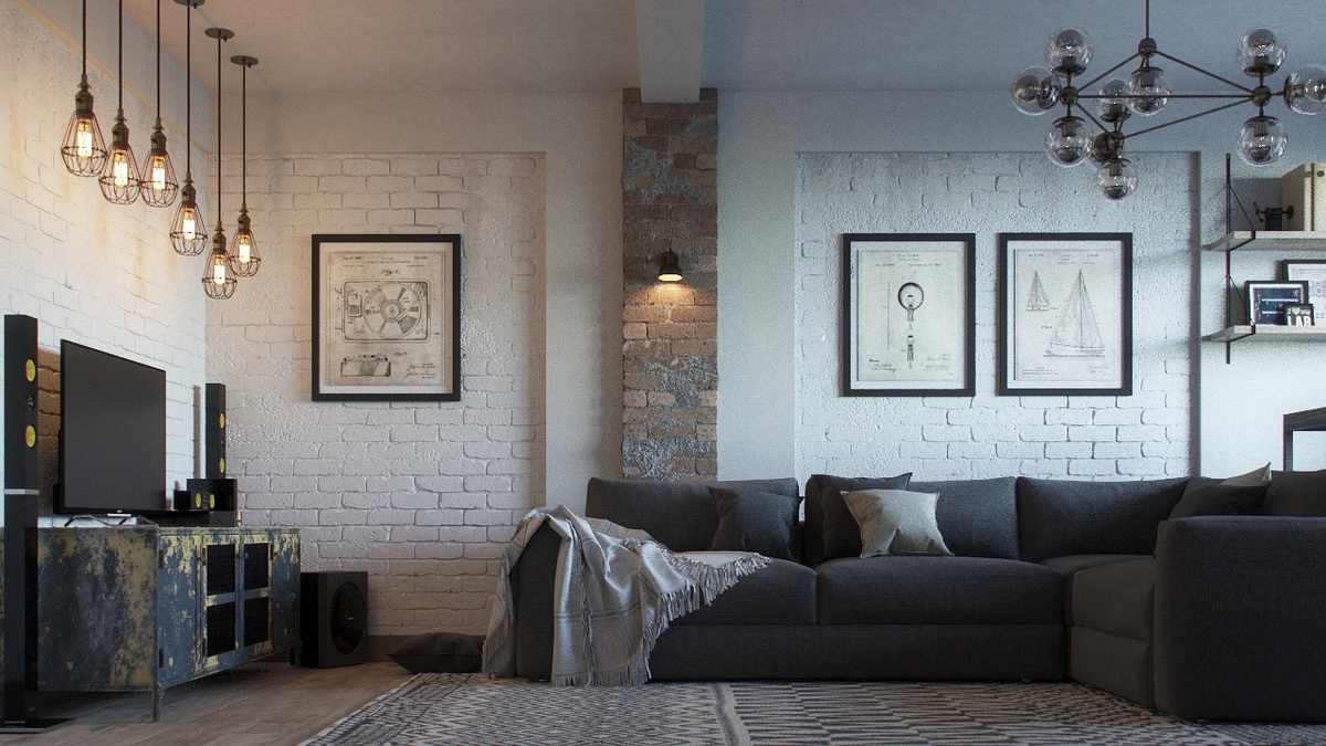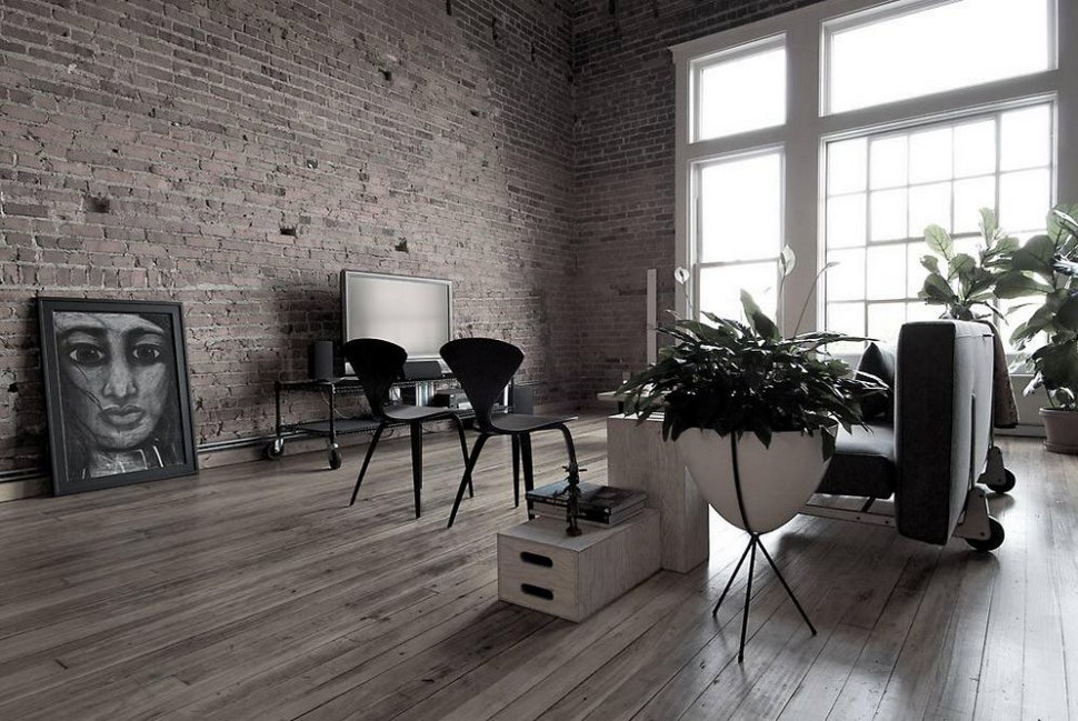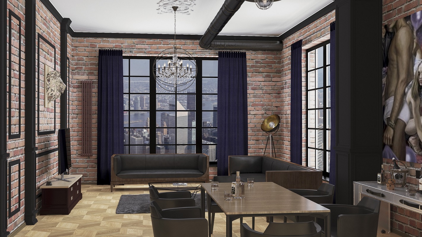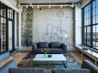 Dieser Stil bezieht sich auf das unfertige Mauerwerk, auf betont offene Rohre und andere Verbindungen sowie auf die Rauheit des grauen Putzes. In der Regel sind die Zimmer im Loft-Stil mit Studio-Apartments oder geräumigen Zimmern ausgestattet.Der Stil verwendet die Trennung in funktionale Zonen und Räume nicht besonders ausgeprägt.