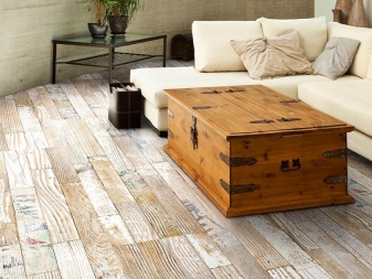 Es ist besser, Plastik und Vinyl komplett aufzugebenaber sie können in kleinen Mengen verwendet werden. Sie können natürliche Holz- oder Steinoberflächen nachahmen. Es ist besser, wenn alle Oberflächen grob behandelt werden, dies gilt insbesondere für Holzdielen und einige große Möbel. Metallobjekte sollten einen matten oder glänzenden Glanz haben, ein solcher Schimmer wird diesen Stil perfekt ergänzen. Zur Dekoration können Materialien wie Chenille und Kunstleder verwendet werden.