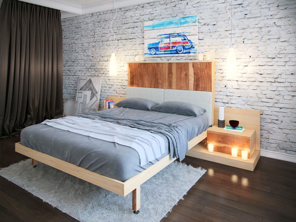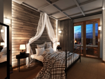 Für die Anordnung von Schlafzimmern und Kinderzimmern ist es besser, kompaktere Betten aus Holz zu verwenden, und sie müssen nur mit einfachen Decken dekoriert werden. Helle Akzente sollten nicht hier sein, da der Schlafbereich fast unsichtbar ist.