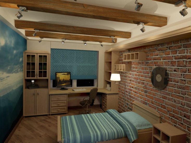 Wenn Sie Vasen und Blumentöpfe brauchen, sollten sie einfach und nicht zu hell sein.Kleine Tanks können anstelle von Blumentöpfen verwendet werden. Für die Dekoration der Wände werden häufig Verkehrsschilder, Rettungsringe und andere ungewöhnliche Gegenstände verwendet. Sills besser nicht überladenist es besser, die Dekorelemente auf den Kommoden und Beistelltischen anzuordnen. Bei den Gemälden sind abstrakte Kunstwerke erlaubt.