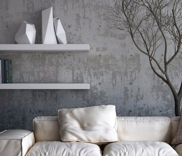 Die Oberfläche muss rauh sein und ein Gefühl der Unvollständigkeit erzeugen.. Wenn Sie einen nicht zu dunklen Raum schaffen möchten, können Sie weißen und grauen Zement mischen und eine Wand für sie auswählen und den Rest in einer dunkleren Farbe malen.