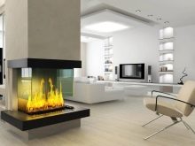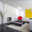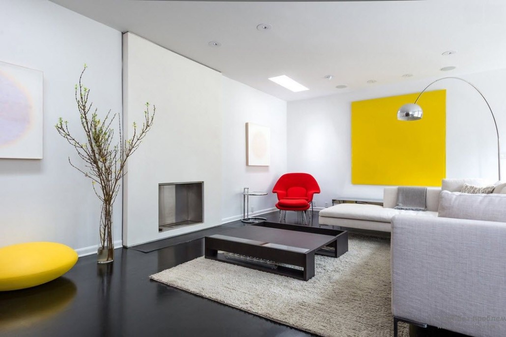 Auf ein Minimum reduziert, wird ein Kamin aus einem festen Stück Stein oder Metall der hellste Teil eines Wohnzimmers sein. Die teuersten Optionen sind hängende oder Panorama-Kamine, mit denen Sie die Flammen von mehreren Seiten sehen können. In einem solchen Raum entsteht der Effekt der Präsenz in einem Science-Fiction-Film im Haus der Zukunft. Minimalisten sind verrückt nach abstrakter Malerei und Grafik. Solche Leinwände passen nicht nur perfekt ins Interieur, sondern vermitteln auch die Essenz und Philosophie dieses Stils.