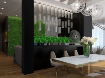 Auch der Öko-Minimalismus fällt auf. Die Bevorzugung wird nur natürlichen Materialien von natürlichen Farbtönen gegeben. Mehr Grün und Hauspflanzen in allen Teilen der Wohnung. Es ist sogar möglich, einen Teich oder einen kleinen Springbrunnen zu imitieren, wenn das Layout des Gehäuses es zulässt. Es ist notwendig, so viele Lichtquellen wie möglich zu verwenden, und Fenster sollten immer ohne Vorhänge sein.