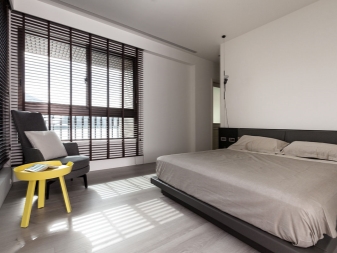 Der innere Minimalismus sollte so viel Licht wie möglich darstellen. Es ist wünschenswert, dass natürliche Beleuchtung herrschte, also nicht die Fenster vorhängen. Beschränken Sie sich auf die Installation von bescheidenen horizontalen oder vertikalen Jalousien, um die Fenster am Abend zu schließen. Fans von Öko-Minimalismus werden Bambus Vorhänge und Bildschirme lieben.