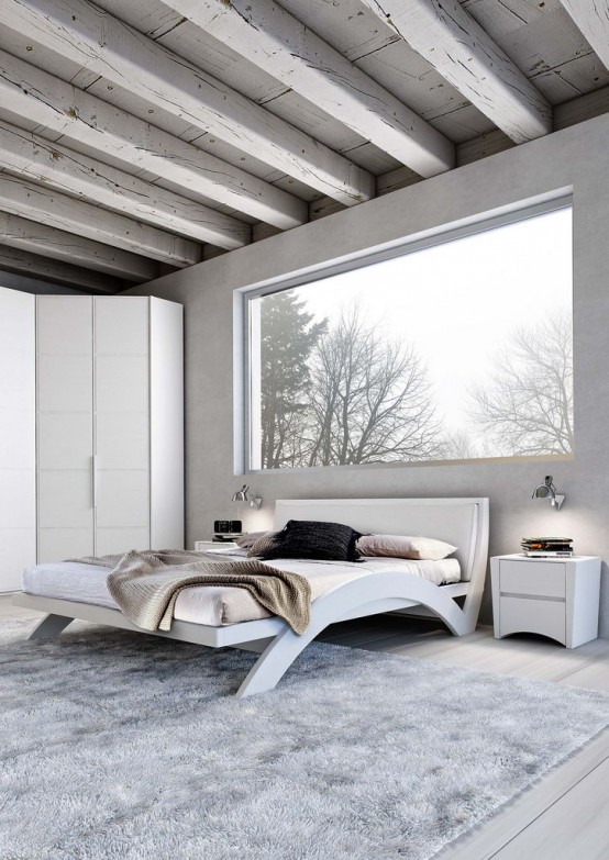 Legen Sie im Schlafzimmer ein Klappsofa oder ein Bett, das im Schrank entfernt ist. Wenn Sie keine Zeit aufbringen wollen, um das Bett zu bekommen und zu legen, legen Sie ein niedriges Bett ohne Kopfteil. Sie können nur ein Interieur mit einem Kleiderschrank und einem Nachttisch Regal hinzufügen, alles andere wird überflüssig sein. Konzentrieren Sie sich im Badezimmer auf Kunststoff-, Glas- und Metallteile.