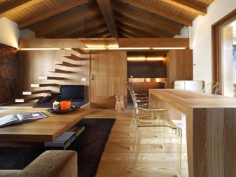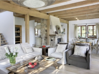 Die Situation in verschiedenen Dorfhäusern kann erheblich variieren. Oft überwiegen jedoch einfache Innenräume. Es ist selten, ein barockes Dorfhaus zu finden. Auch moderne Ensembles im High-Tech-Stil werden nicht zu oft gewählt, denn außerhalb der Stadt möchten Sie sich auch im Haus wie ein Stück Natur fühlen. Deshalb Die vorherrschenden Designtrends sind provenzalische, Country-Stil oder eklektische Versionen.