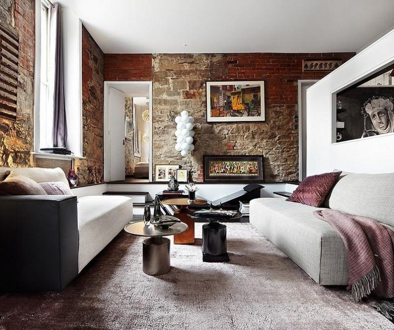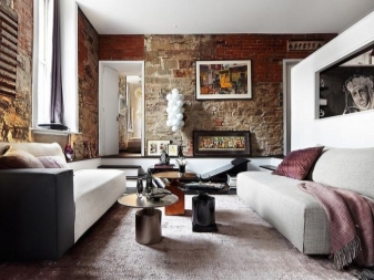 Besonders stilvoll können solche Dinge in Häusern von einer Bar aussehen. Zum Beispiel können Wände ohne Nachbearbeitung verlassen werden. Für andere Häuser als Dekoration wählen Sie oft ein einfaches Gemälde der Wände oder Fliesen unter den Ziegeln.