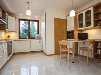 - Fliesen werden verwendet, um den Boden im Flur oder in der Küche zu beenden, aber das ganze Haus ist ziemlich selten mit einer Kachel gefliest.