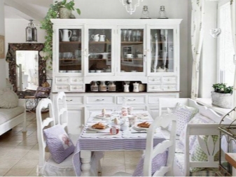Für Möbel sind Vintage-Produkte am besten geeignet. Wenn es keine gibt, können Sie stilisierte Modelle kaufen oder selbst herstellen. Meistens sind es Holzmöbel, die in weiß lackiert sind.