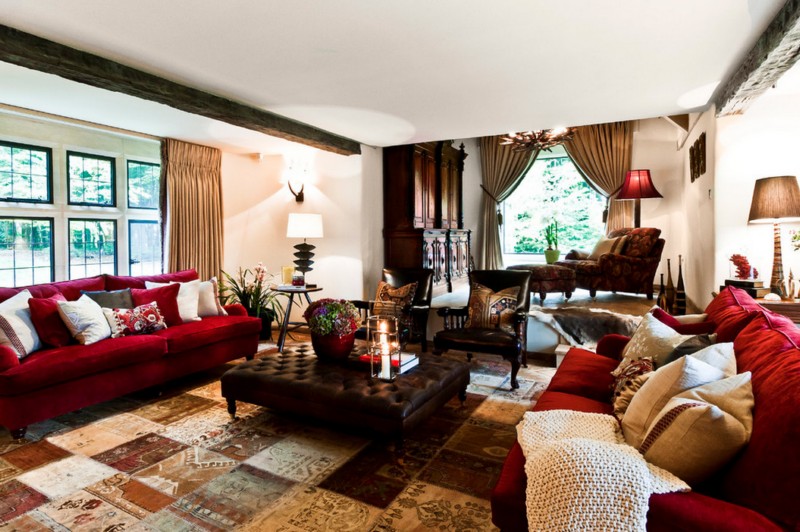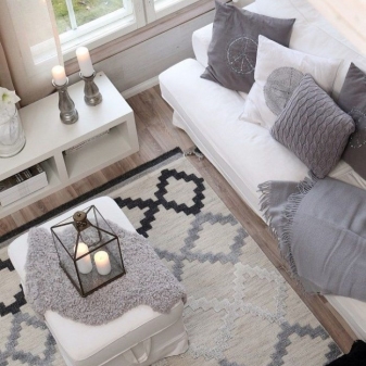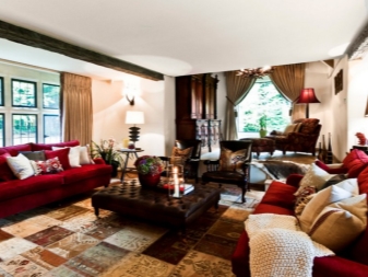 - Teppich ist eine notwendige Sache in jedem Landhaus, weil normalerweise die Fußböden in den Landhütten ziemlich kalt sind. Aus Gründen der Praktikabilität ist es nicht notwendig, zu leichte Teppiche zu wählen, da diese schnell schmutzig werden und schnell unbrauchbar werden. Am wärmsten und angenehmsten sind Teppiche mit einem langen Nickerchen, die jedoch sorgfältig gepflegt werden müssen. Wenn Sie nicht oft putzen möchten, können Sie modische, jetzt fusselfreie Stoffmatten in Betracht ziehen.