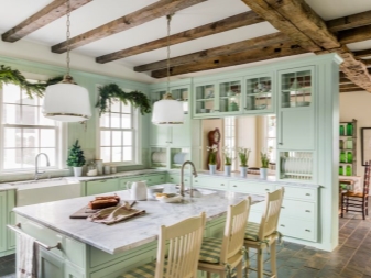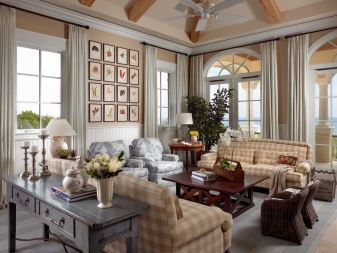 Dies ist eine weitere modische und interessante Lösung für Ferienhäuser oder Landhäuser. In diesem Stil schmücken Häuser in der Provinz Südfrankreich. Es verbindet Einfachheit, Praktikabilität und Raffinesse. Ein charakteristisches Merkmal der Innenausstattung dieser Art sind weiche Pastellfarben -hellgrün, pink, blau oder gelb, die in einem schmalen und in einem geräumigen Raum gut aussehen werden.