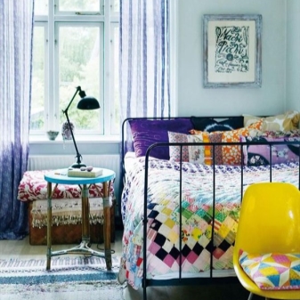 - Die Tagesdecke auf dem Bett und die Kissen im Schlafzimmer können Sie selbst nähen. Bei der Wahl des Designs, gehen Sie aus dem Inneren des Raumes.Für Dorfhäuser sind jetzt gewebte Accessoires in Patchwork-Technik beliebt. Diese Decken und Kissen können aus kleinen Stücken von Stoffen genäht werden, die Sie nicht benötigen. Es ist auch zulässig, das Datscha-Haus zu Hause mit ähnlichen Kissen in verschiedenen Formen und Größen zu dekorieren.