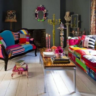 Dies ist ein modischer und moderner Trend, der Designern viel Raum für Fantasie lässt. Das Mischen verschiedener Stile im selben Raum kann wirklich sehr interessant aussehen. Zumindest wird ein solches Interieur niemals langweilig sein.