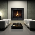 Gegenwärtig ist die Verwendung eines Kamingeräts als ein Element des Innenraums in einem minimalistischen Stil weit verbreitet. Der Hauptunterschied ist das Fehlen jeglicher Einrichtung. Der Kamin ist in die Wand eingebaut und somit wird die Wirkung eines Fensters mit einem brennenden Feuer erreicht. Die Einrichtung ist funktional und einfach., ist charakteristisch für diese Art von Konsolenmöbel, die mehrere Funktionen gleichzeitig ausführen.
