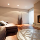 Die Beleuchtung im Wohnzimmer im Stil von High-Tech unterscheidet sich vom Standard. Es erfordert einen Eindruck von einem hellen und großen Raum. Die gewünschte Unterscheidung zwischen Kamin- und Fernsehbereich kann durch den Einsatz von Kabelleuchten aus Glas, Stahl oder Kunststoff erreicht werden.