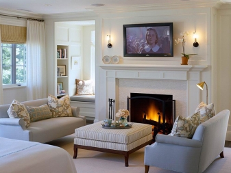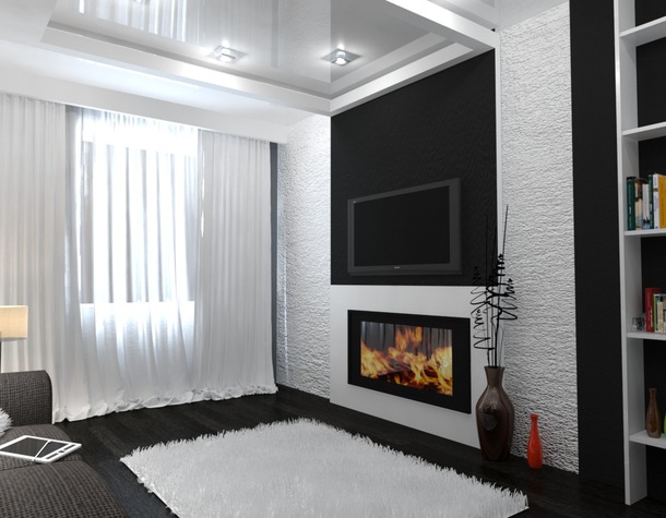 - Es wird nicht empfohlen, einen Fernseher in der Nähe des Produkts zu installieren, um Sie nicht von der Schönheit des Kamins abzulenken. Eine der besten Möglichkeiten, um einen Fernseher im Bedarfsfall zu platzieren, ist eine Position an der Wand senkrecht über dem jeweiligen Heiz- und Einrichtungsgegenstand.