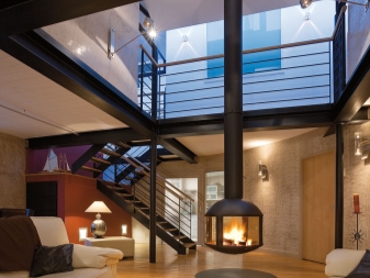 Die Verwendung von Live-Feuer unterstreicht die hohe Position des Hausbesitzers. Es verleiht dem Raum Chic und Originalität, wird in den Augen von Familie und Freunden Bewunderung hervorrufen.