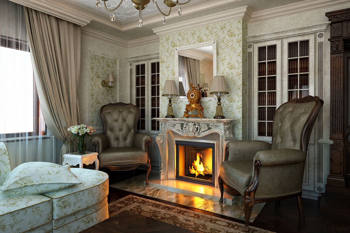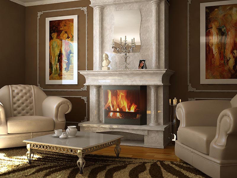 Typischerweise werden Kamin-Designs in Wohnzimmern in einem klassischen Stil installiert. Dieser Stil wird nicht von Modetrends beeinflusst, es ist immer angemessen. Der Klassiker verliert nie seine Relevanz und verbindet Schönheit und Komfort perfekt Der Innenraum muss sich am Ende der Saison nicht ändern. Der Kamin fügt sich in das Gesamtkonzept ein, wenn Sie die richtigen Oberflächen wie Naturstein, Marmor, Braun- oder Sandstein und andere Materialien wählen.