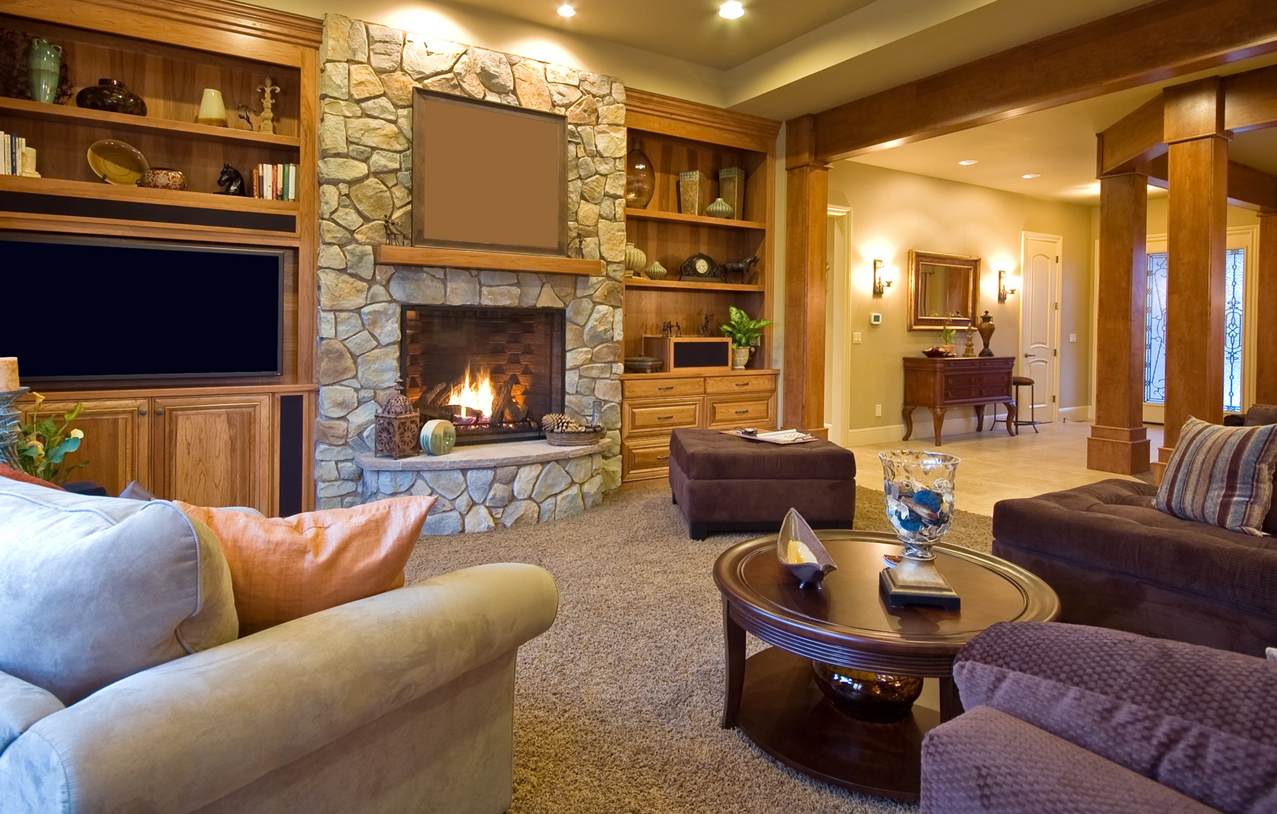 - Der Kamin befindet sich normalerweise an einem Ort, an dem Möbel angebracht werden können, der sich an der Flamme des Kamins orientiert.