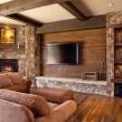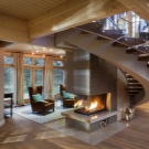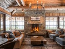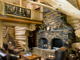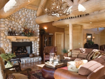 Der Innenraum wird harmonisch sein, wenn er mit einem dekorativen Stein verdünnt wird, der nicht nur gut zu Holz passt, sondern sich auch durch Langlebigkeit und Langlebigkeit auszeichnet. Das Gefühl von heimeliger Wärme kann durch einen Kamin und stilvolle Möbel unterstrichen werden. Es ist erwähnenswert, dass Der Kamin gilt als das wichtigste Dekorelement in der Gestaltung von Holzhäusern. Es verleiht dem Raum eine romantische Stimmung und schafft eine gemütliche Atmosphäre für alle Familienmitglieder.