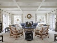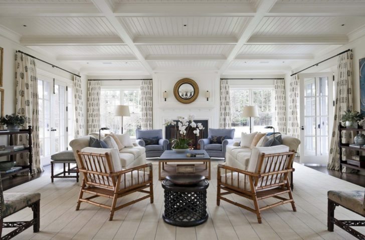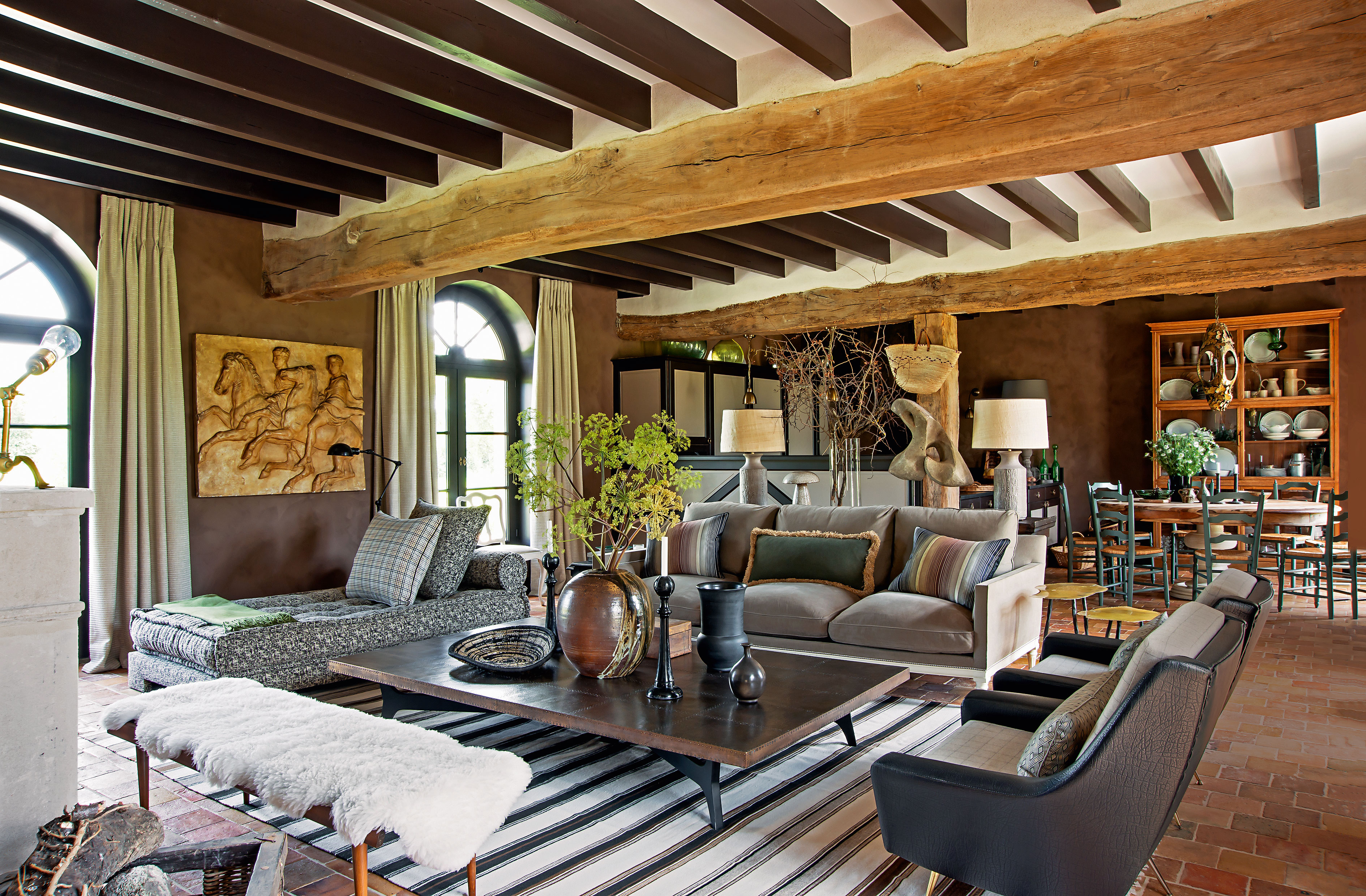 Landhäuser sind in der Regel mit weichen Sofas, Sesseln, Korbwaren oder Lederprodukten ausgestattet. Glasschränke sind auch im Design willkommen. Bei den Tischen sind große runde oder rechteckige Produkte mit ungewöhnlichen Beinen am besten für den Innenbereich geeignet.
